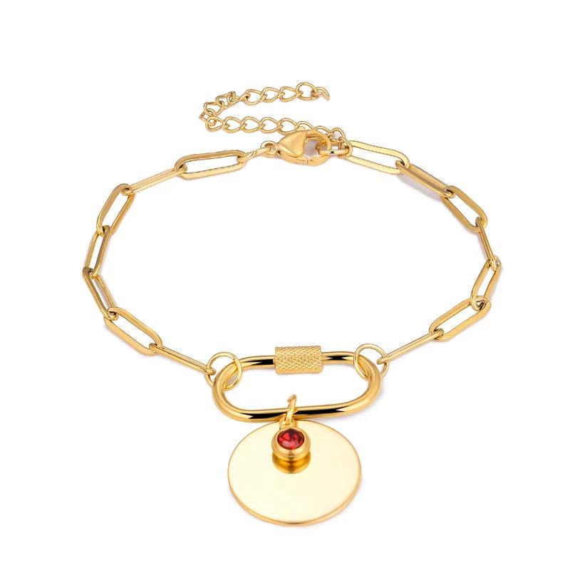 Βραχιόλι επιχρυσωμένο ατσάλι με κόκκινη πέτρα - BR404