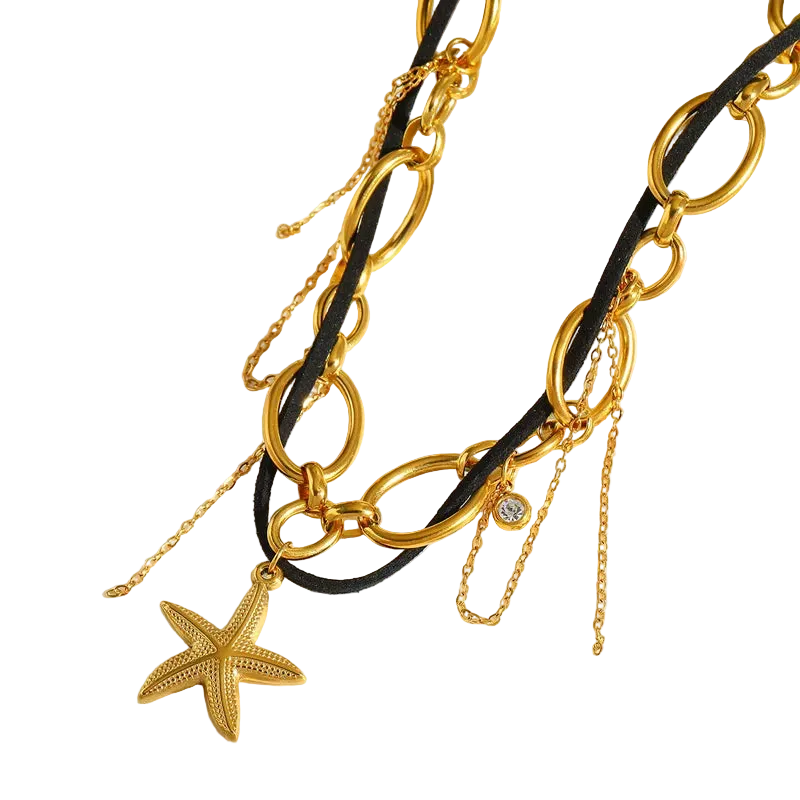 Κολιέ επιχρυσωμένο ατσάλι μπλεγμένο με αστερία-NE639