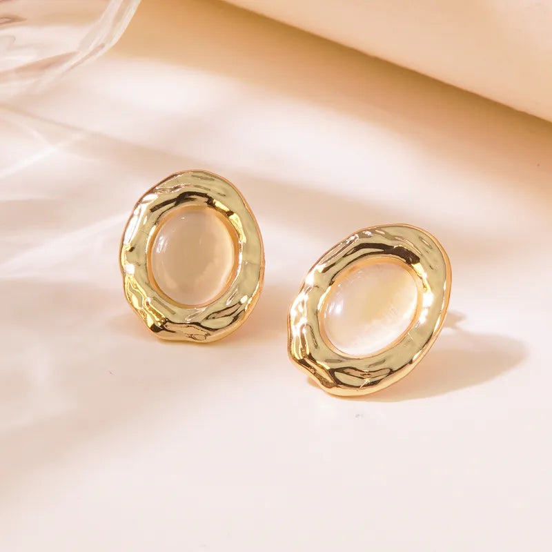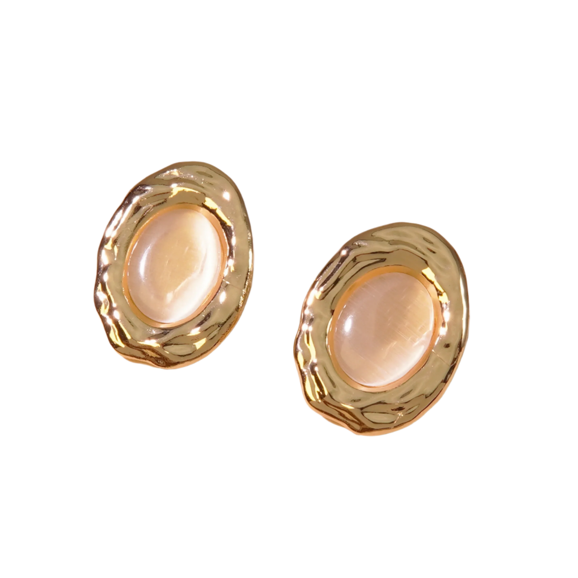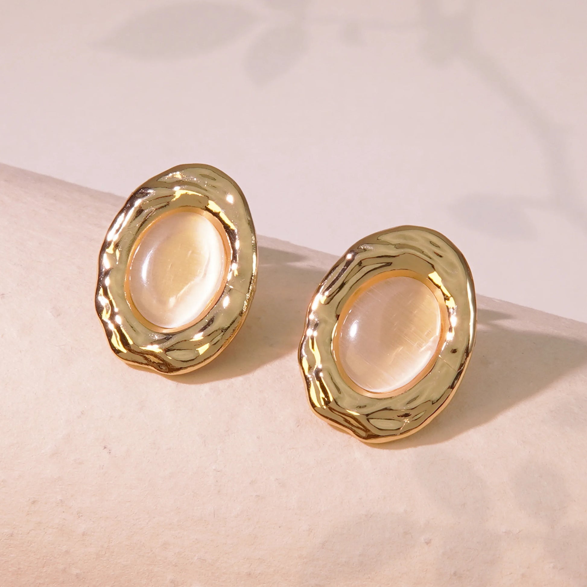 Σκουλαρίκια ατσάλι οβάλ με μπεζ πέτρα-EA321