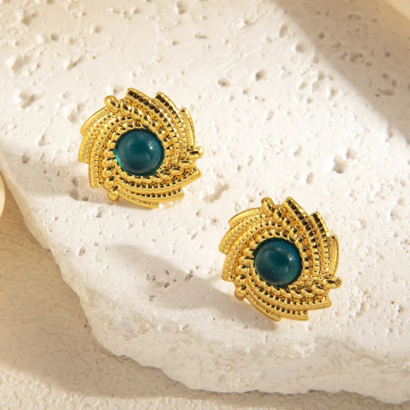 Σκουλαρίκια ατσάλι σπείρα με πέτρα-EA326