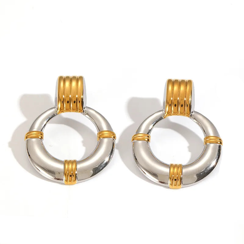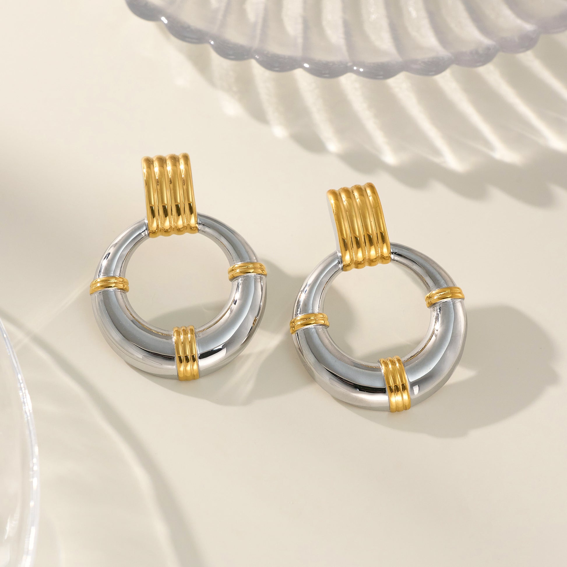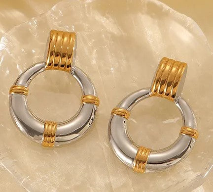 Σκουλαρίκια ατσάλι στρόγγυλο με χρυσές λεπτομέρειες-EA263