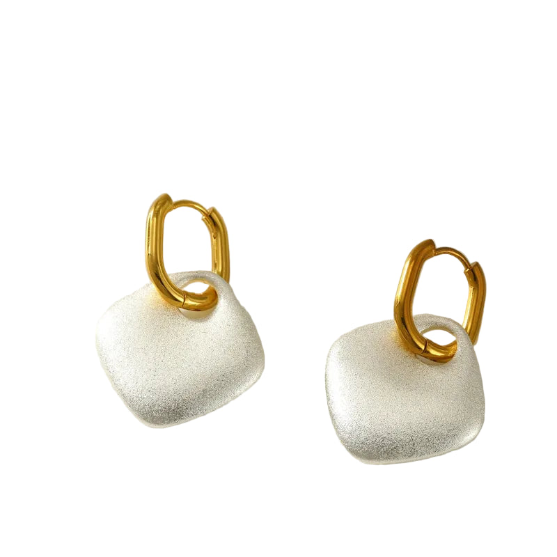 Σκουλαρίκια επιχρυσωμένο ατσαλι λευκό πέταλο-EA240