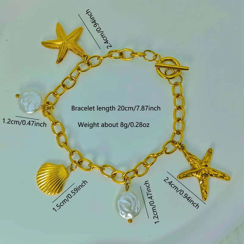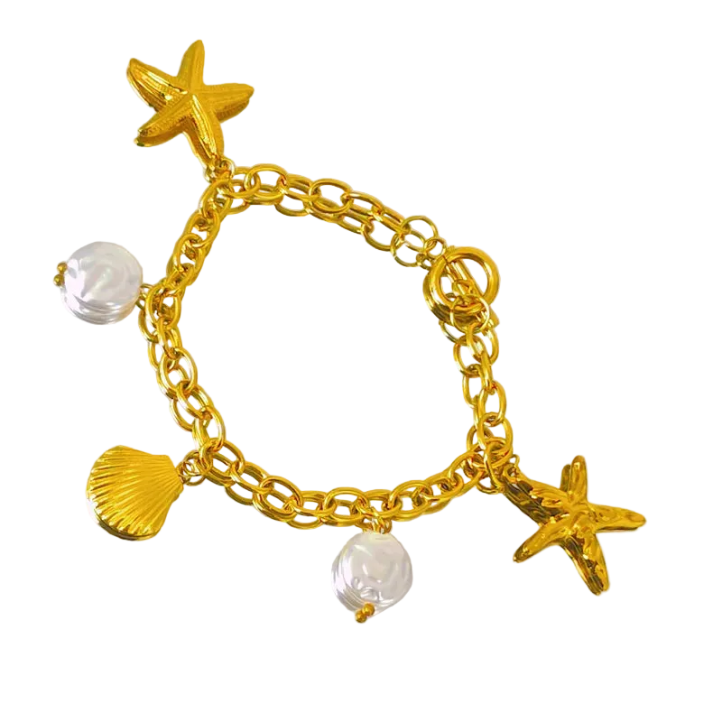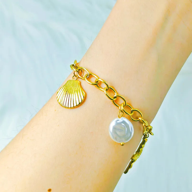Βραχιόλι επιχρυσωμένο ατσάλι με κοχύλια - BR468