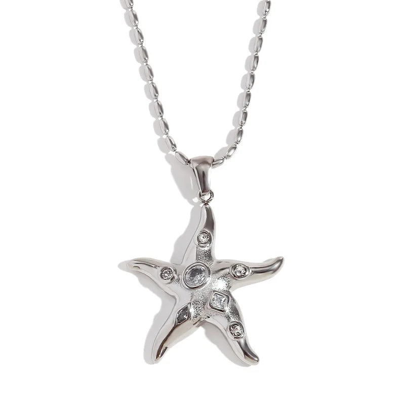 Κολιέ ατσάλι με αστερία και zircon- NE553