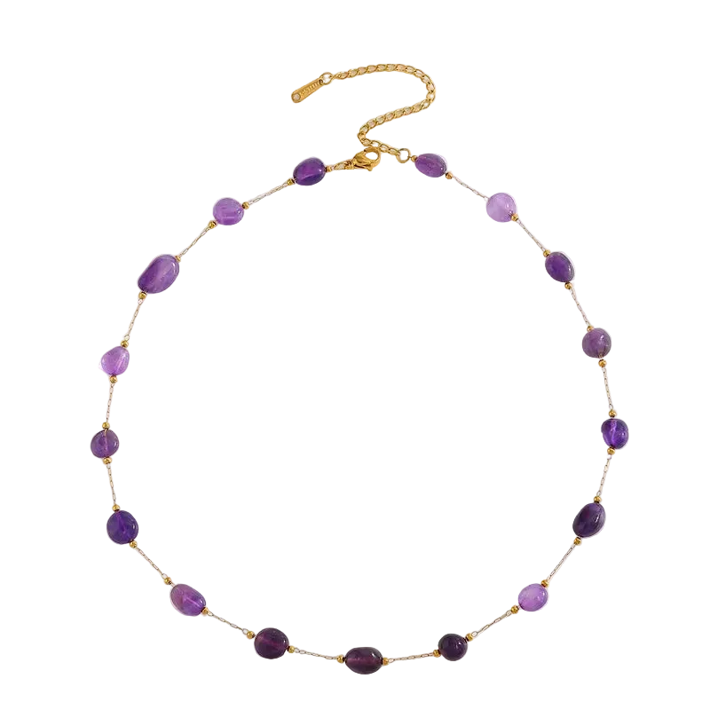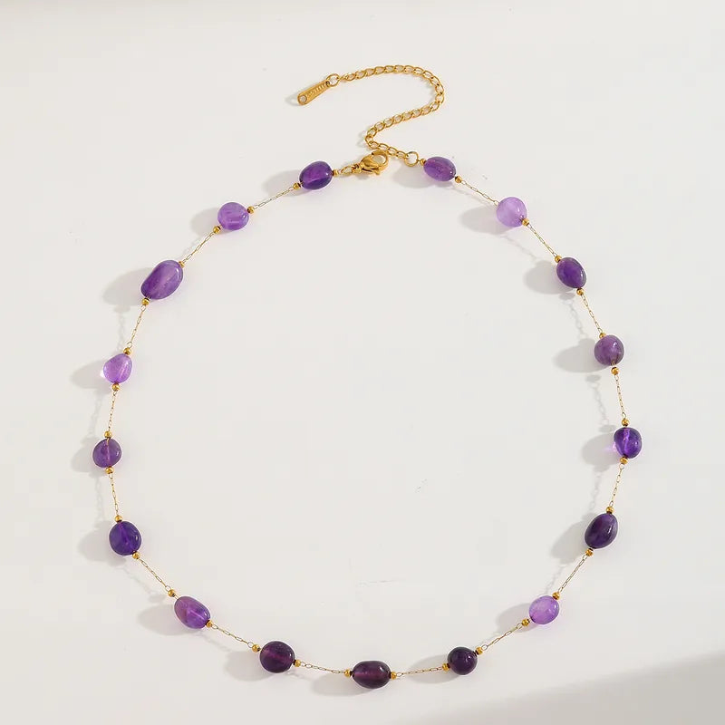 Κολιέ επιχρυσωμένο ατσάλι με μωβ πέτρες - NE681