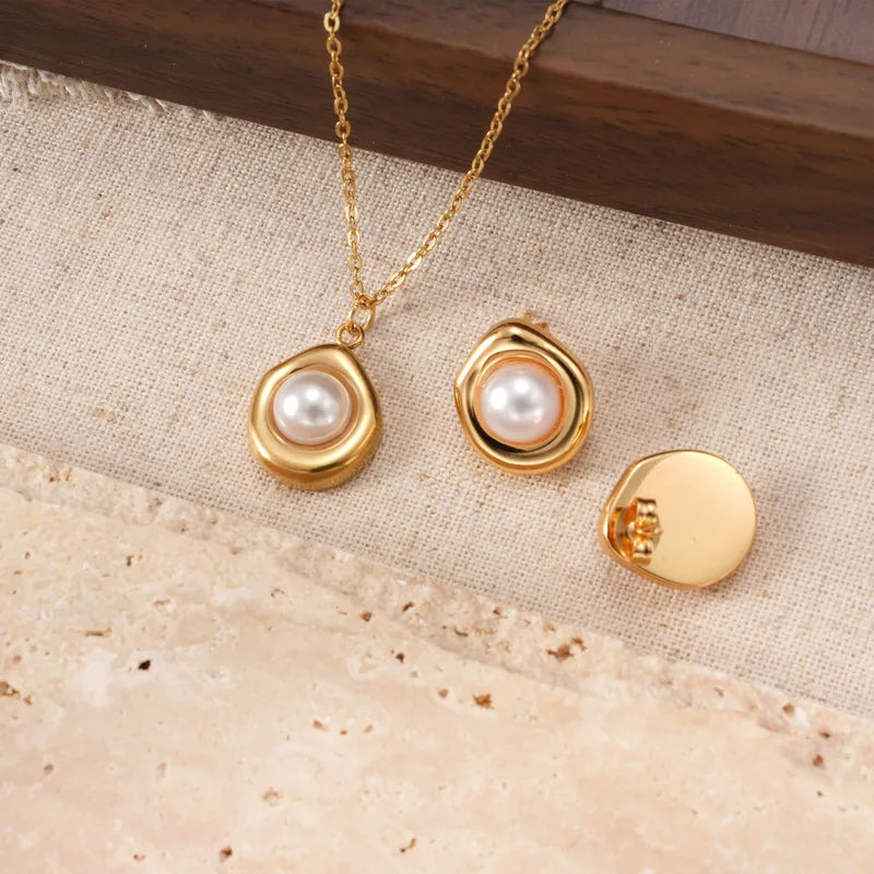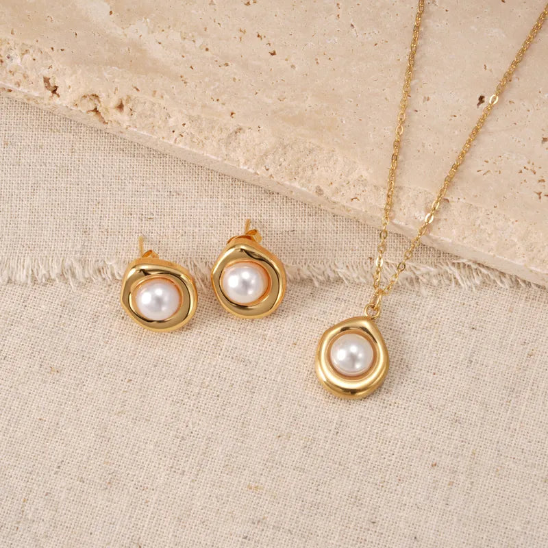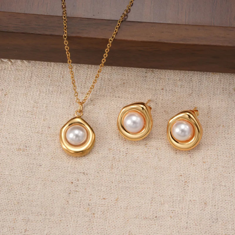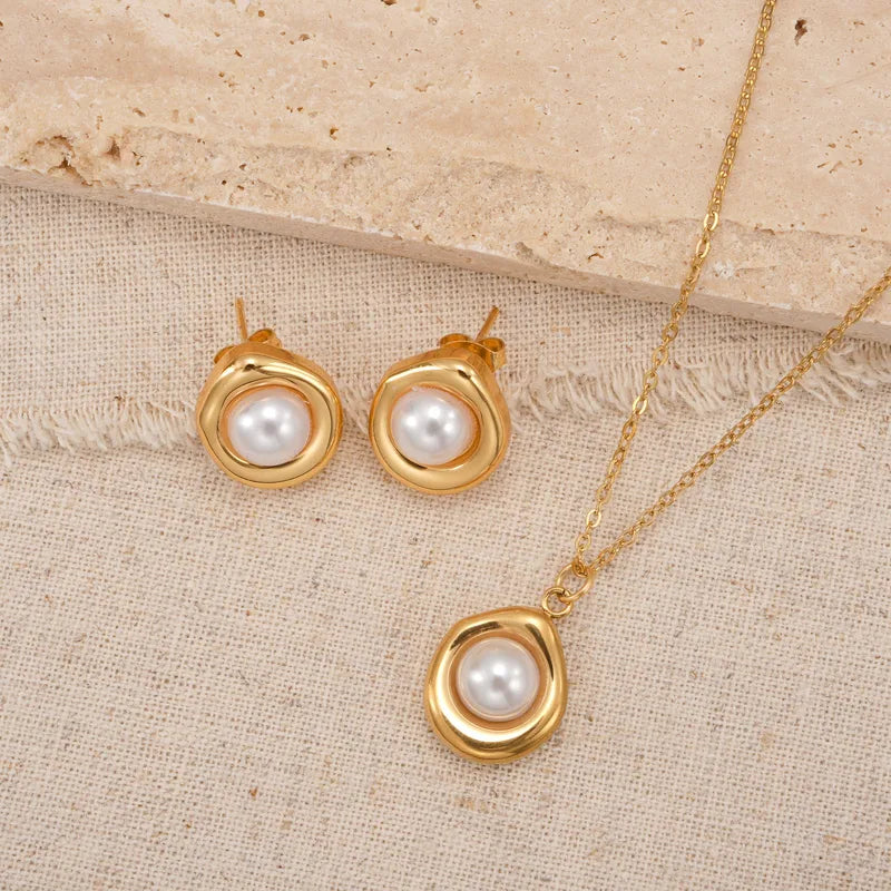 Σετ κοσμημάτων επιχρυσωμένο ατσάλι με πέρλες-SET062