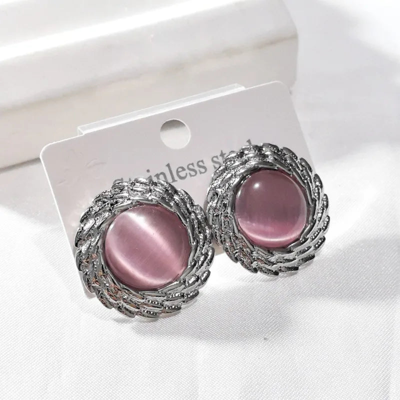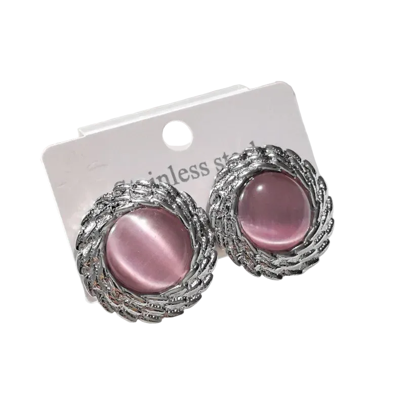 Σκουλαρίκια ατσάλι με ροζ πέτρα-EA441