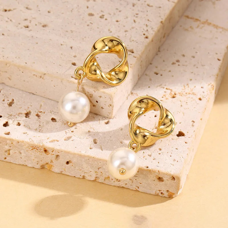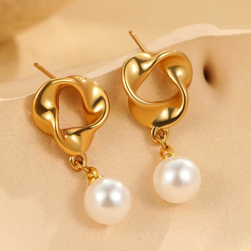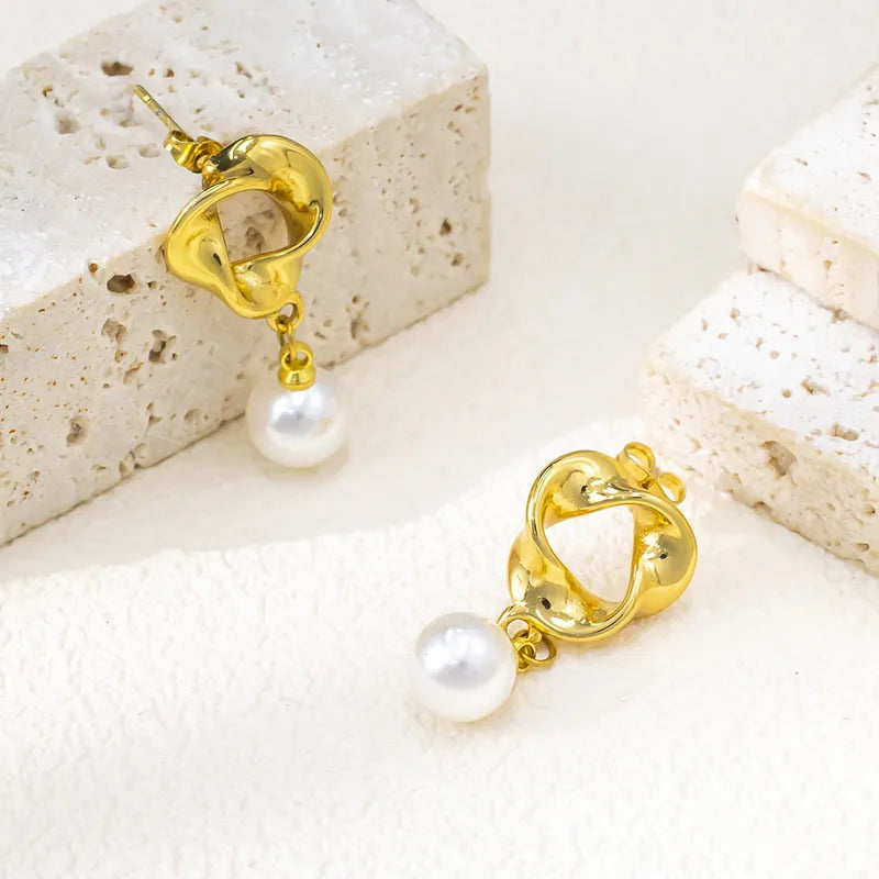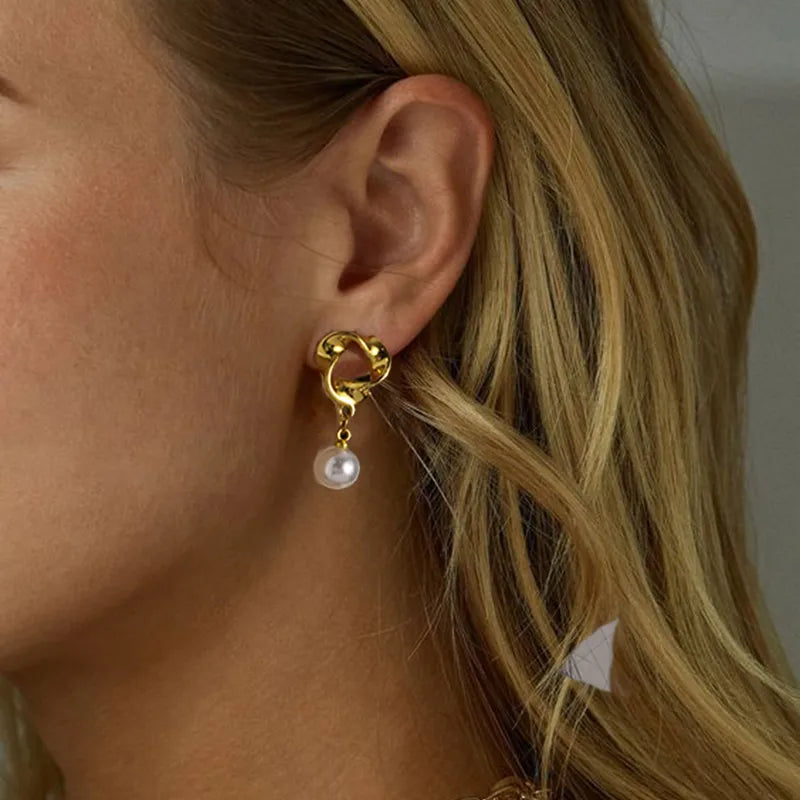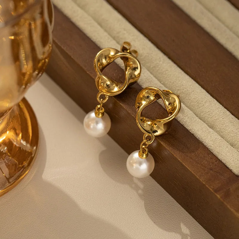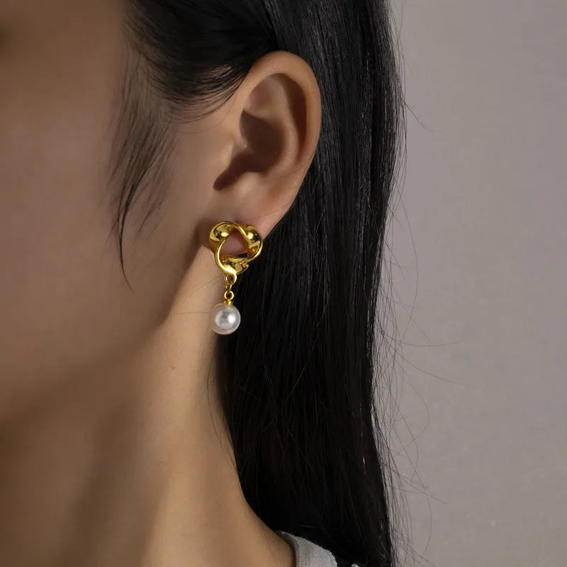 Σκουλαρίκια ατσάλι με κρεμαστή πέρλα-EA407