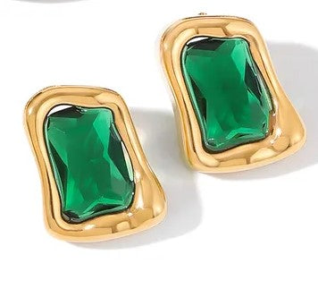 Σκουλαρίκια επιχρυσωμένο ατσάλι με πράσινα zircon-EA521