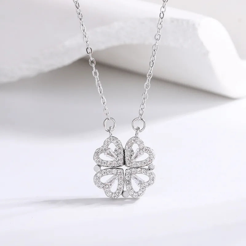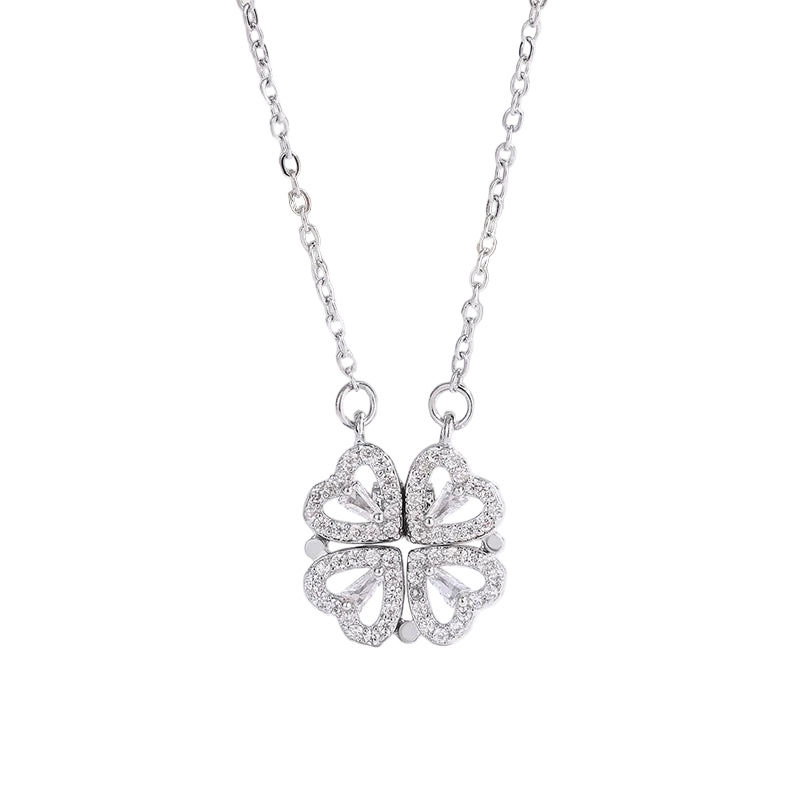 Κολιέ ατσάλι ενωμένες καρδιές με στρας-NE044