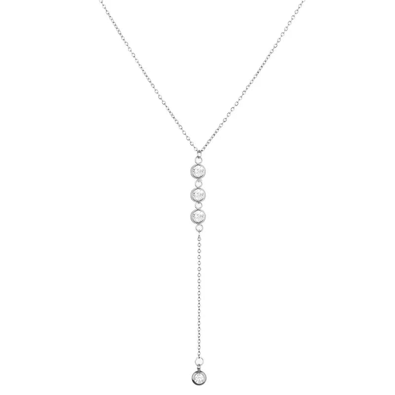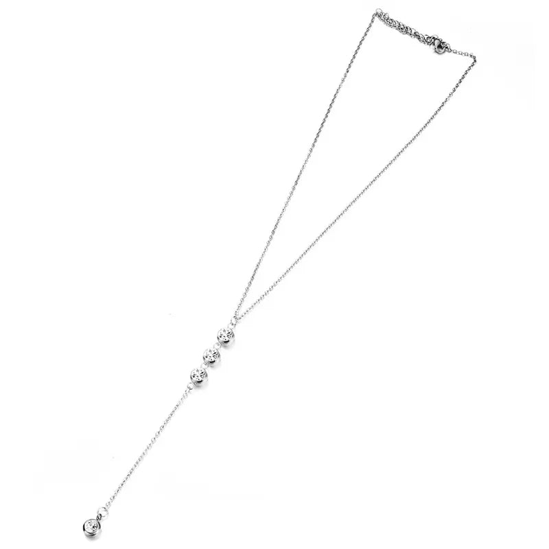 Κολιέ ατσάλι μακρύ με rhinestones-NE378
