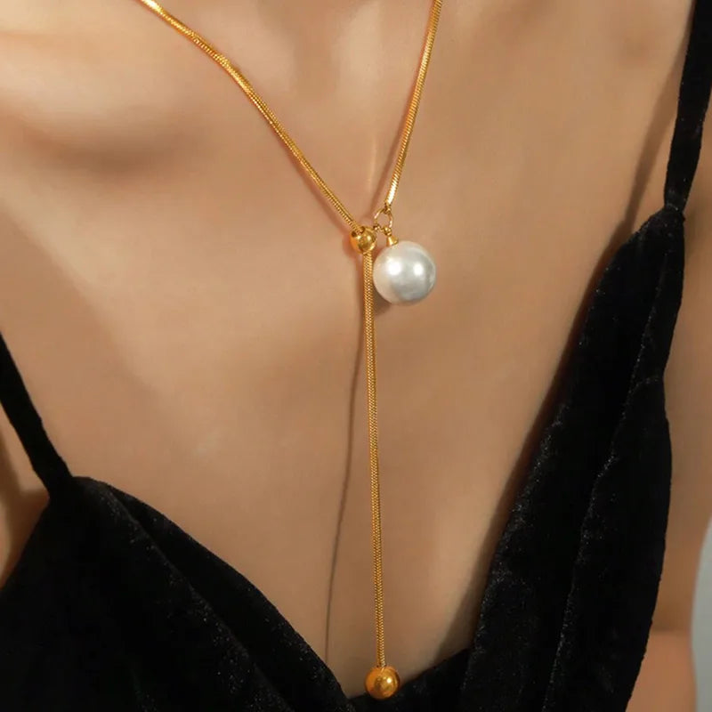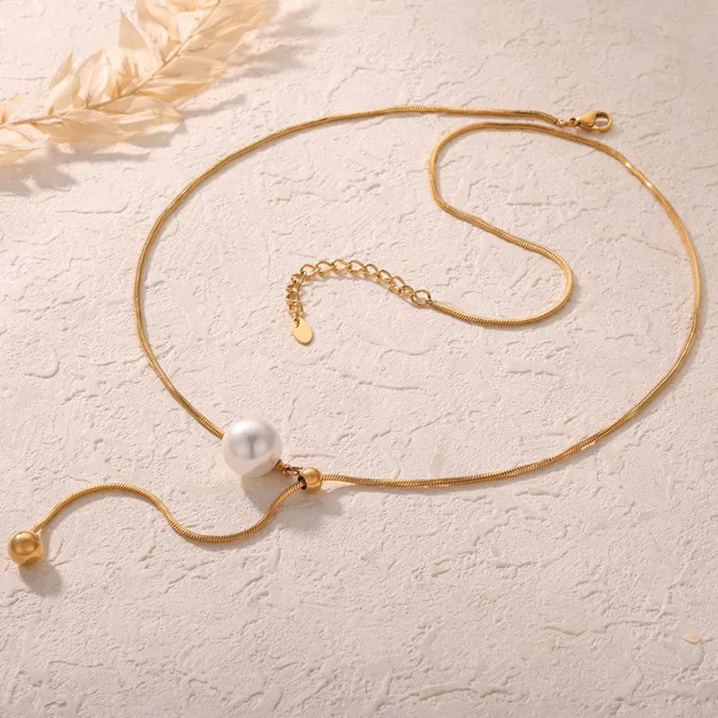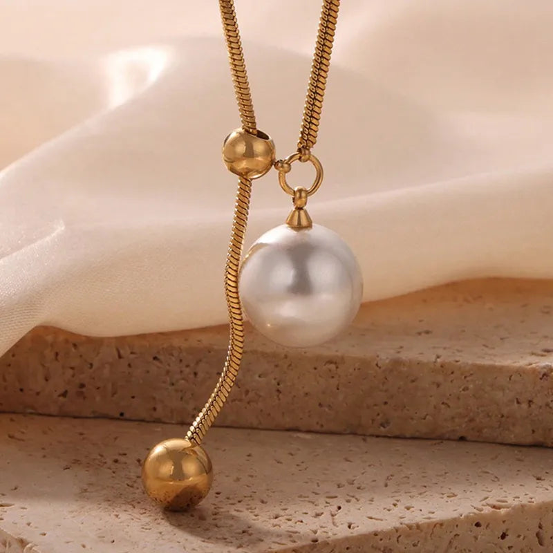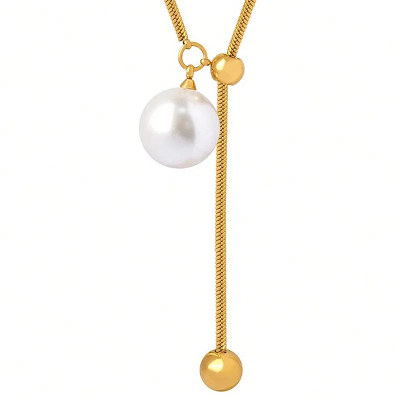 Κολιέ μακρύ ατσάλινο με πέρλα - ne056