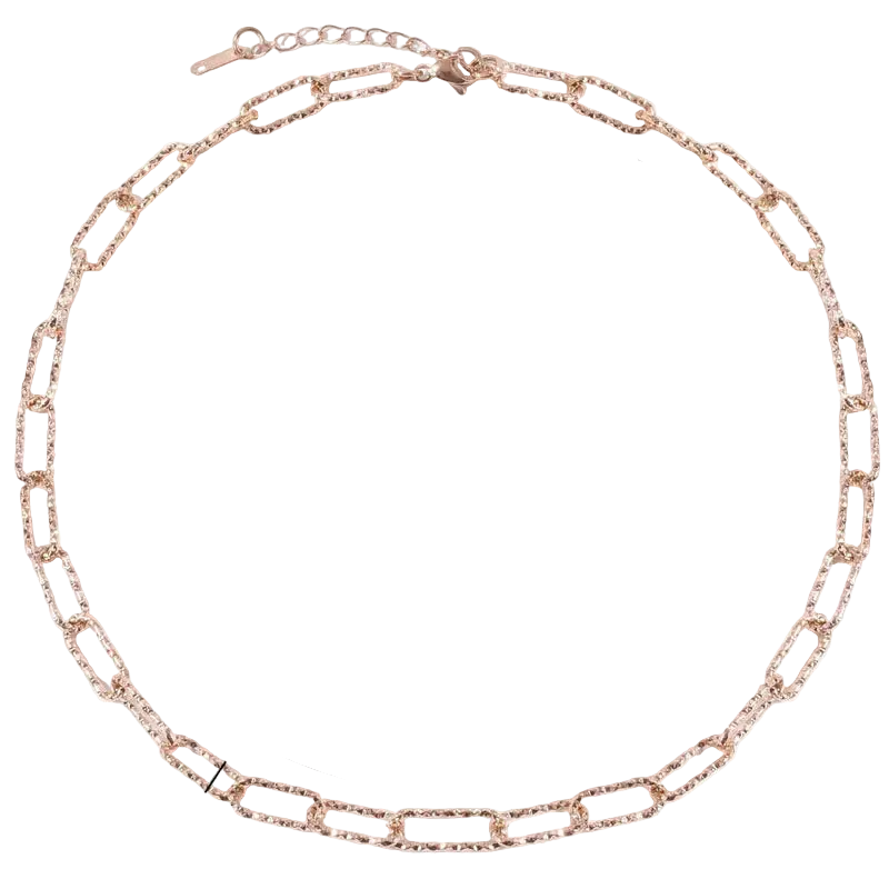 Κολιέ ροζ χρυσό ατσάλι γυαλιστερή αλυσίδα-NE427
