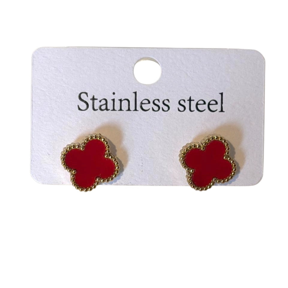 Σκουλαρίκια ατσάλινα με κόκκινους κυκλικούς σταυρούς - w608