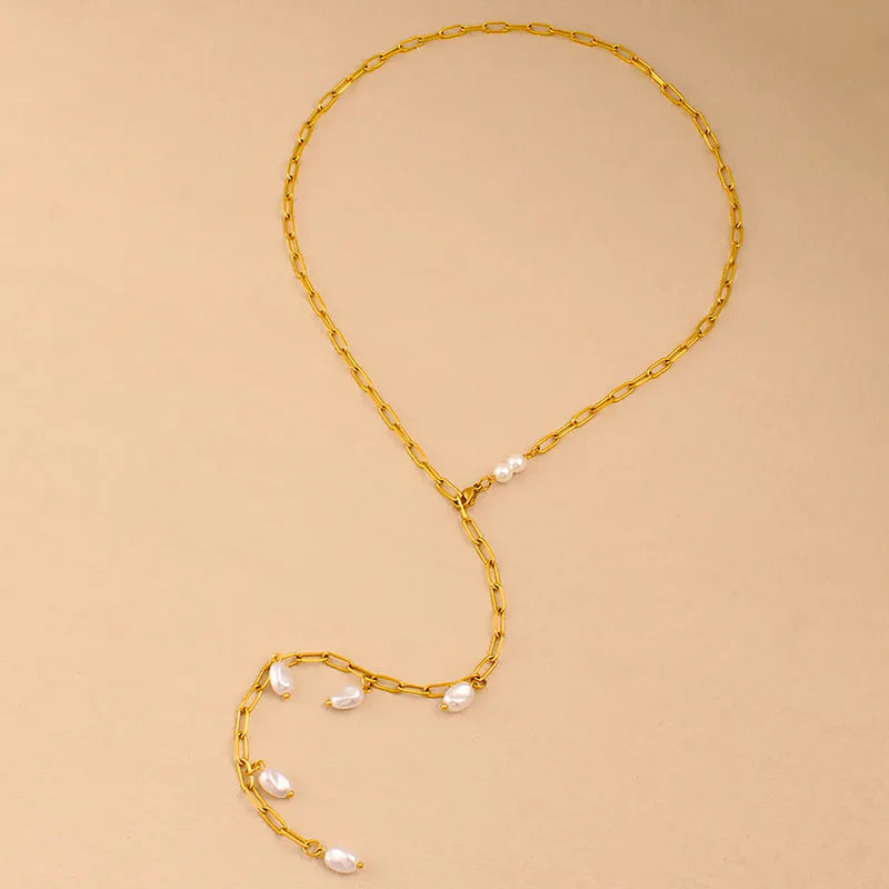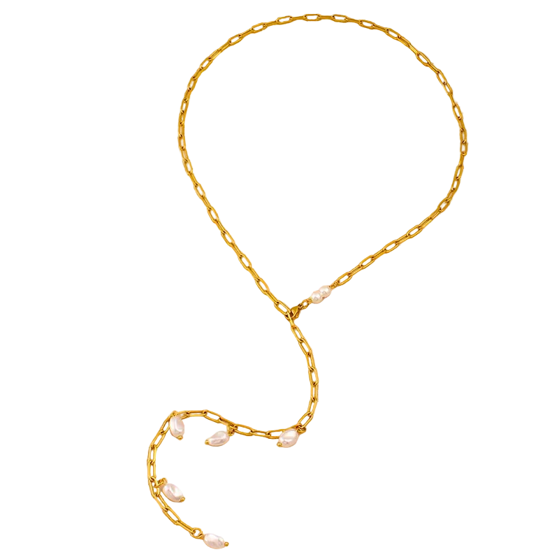 Κολιέ επιχρυσωμένο ατσάλι με μαργαριτάρια - NE706