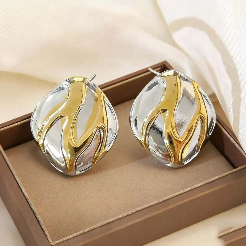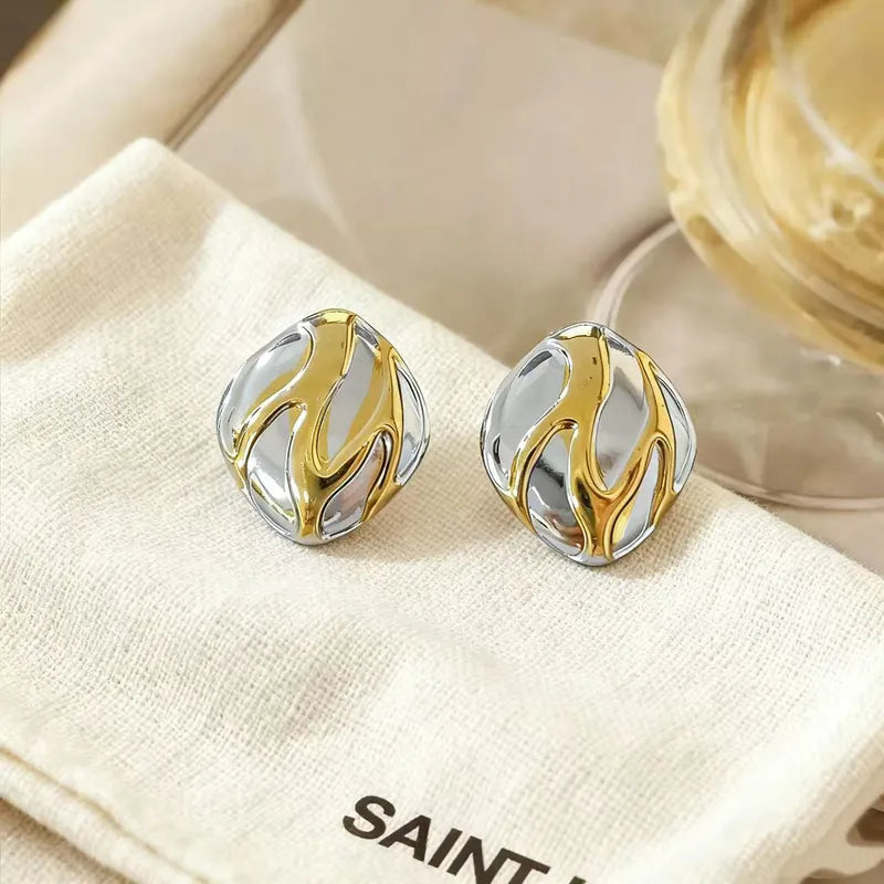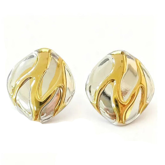 Σκουλαρίκια ατσάλι χρυσό με ασημί-EA655
