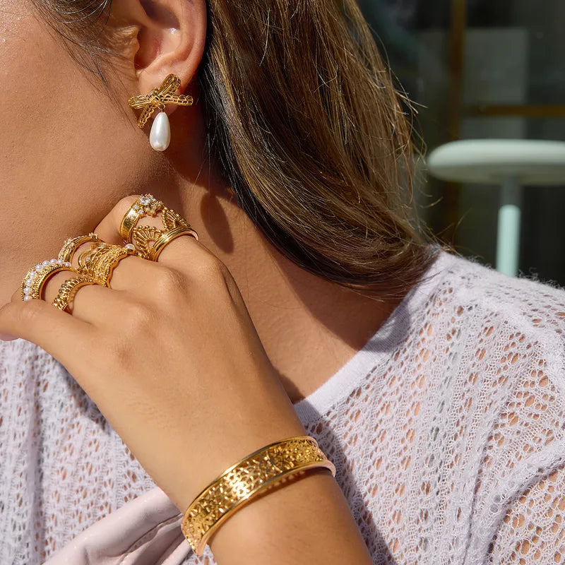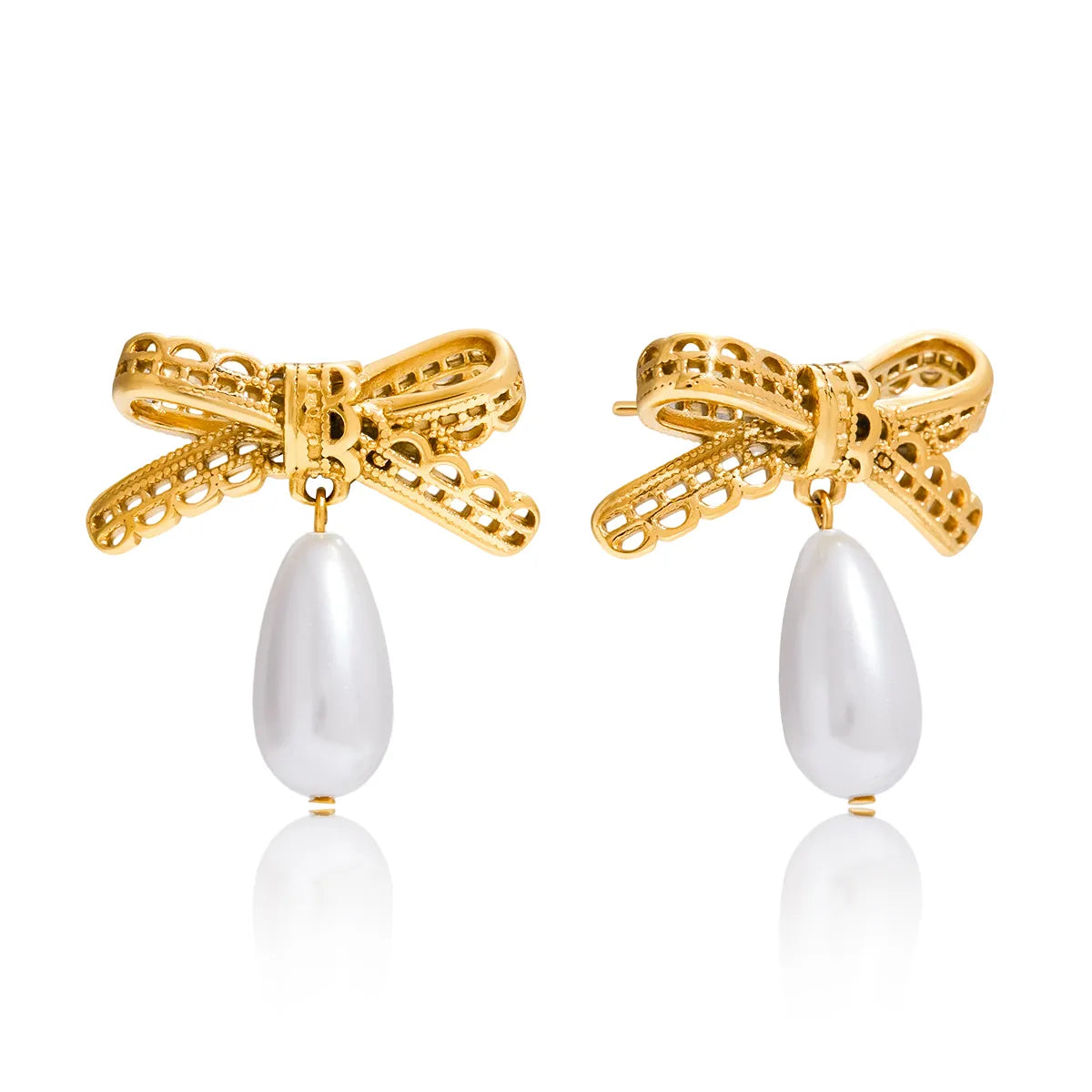 Σκουλαρίκια επιχρυσωμένο ατσάλι με φιόγκο και πέρλες-EA606
