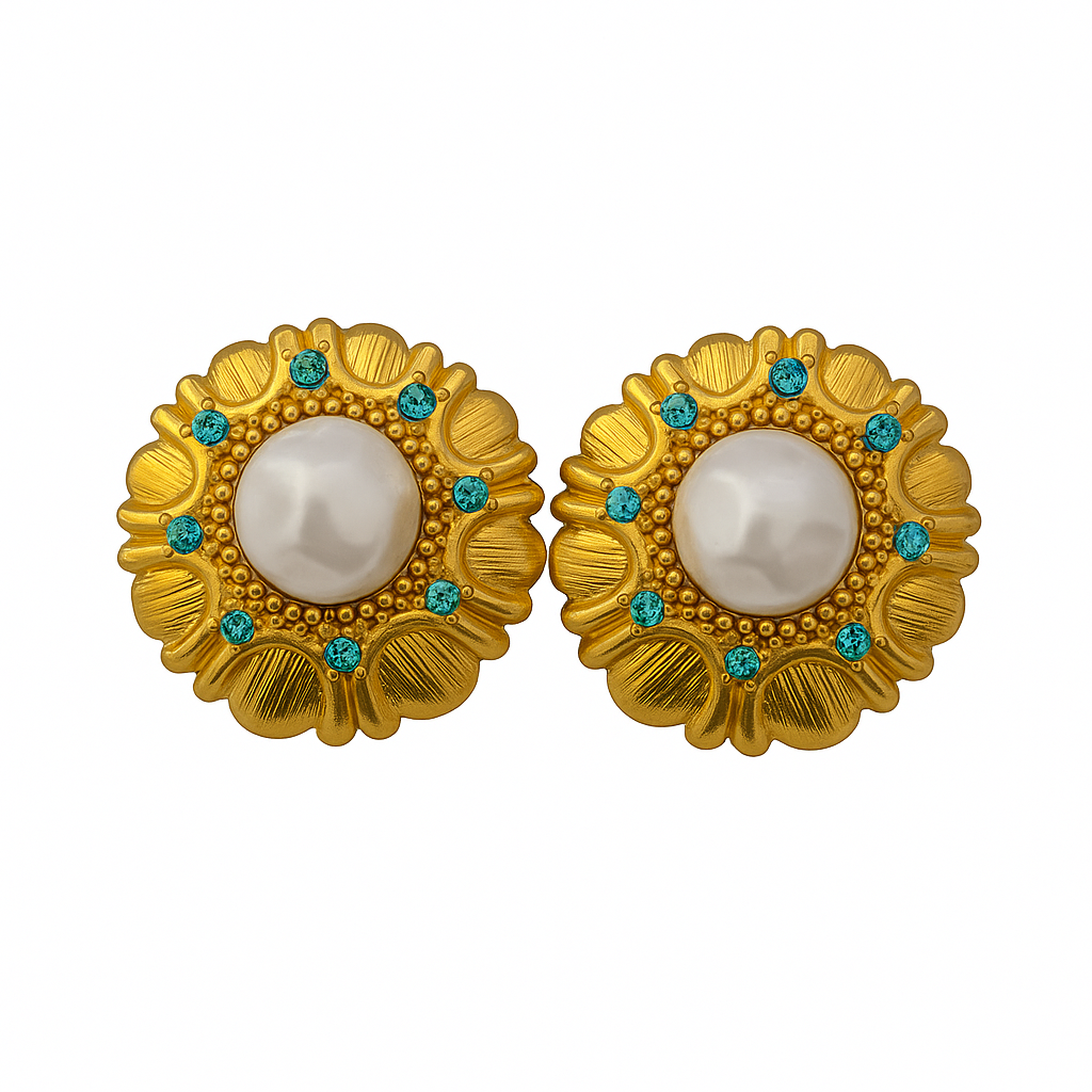 Σκουλαρίκια ορειχάλκινα με γαλάζιες πέτρες -w368