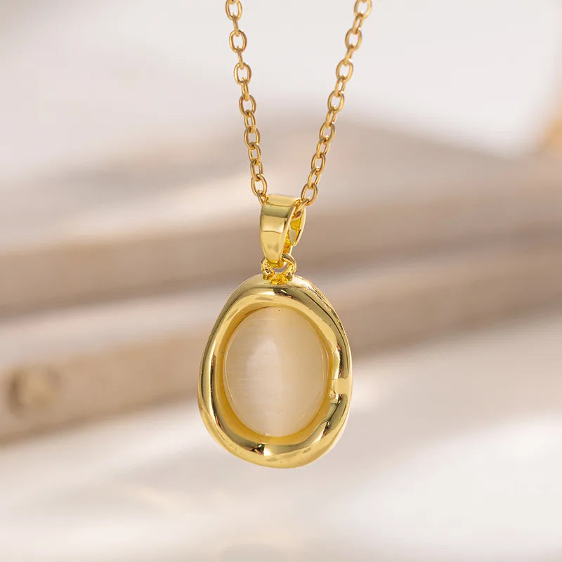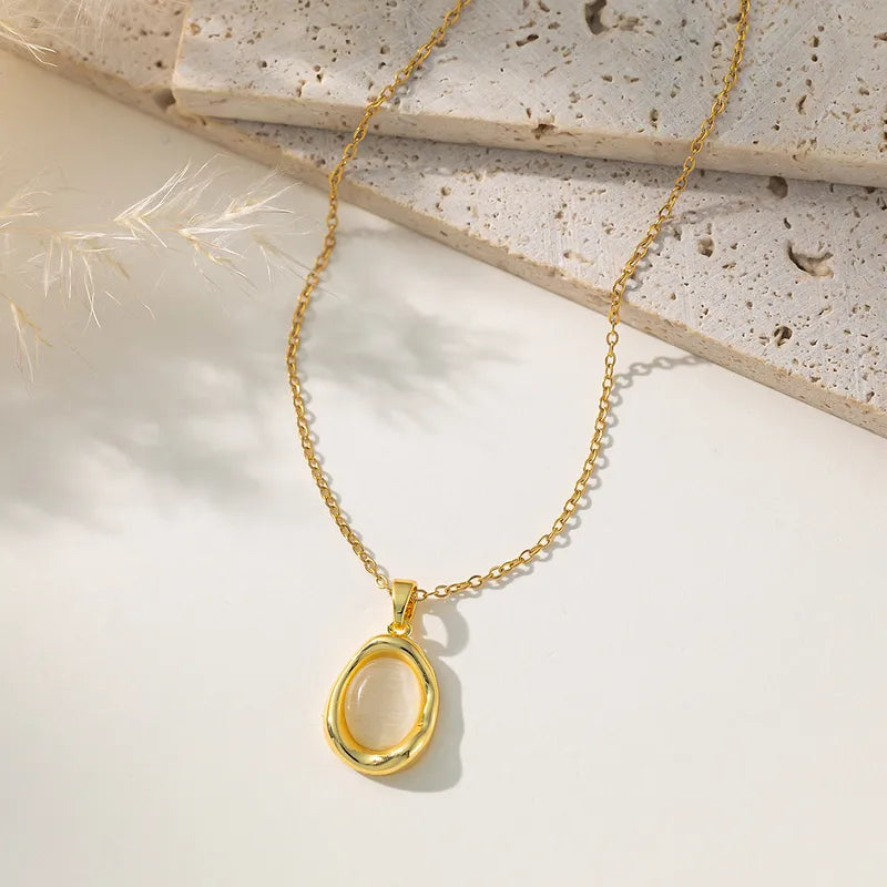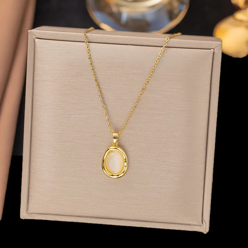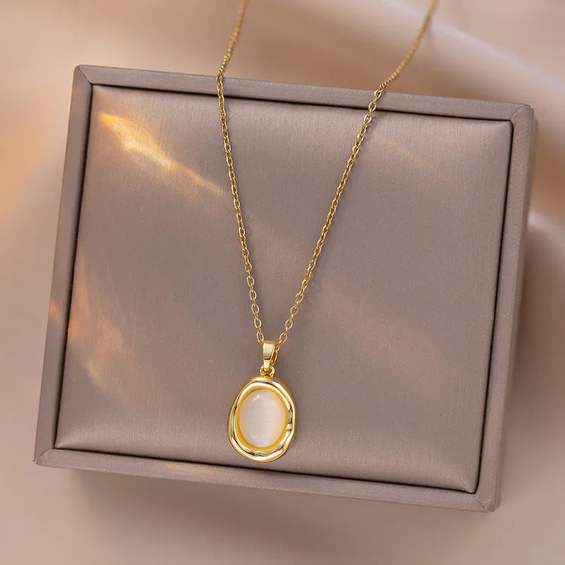 Κολιέ ατσάλι με χρυσό πλαίσιο-NE408