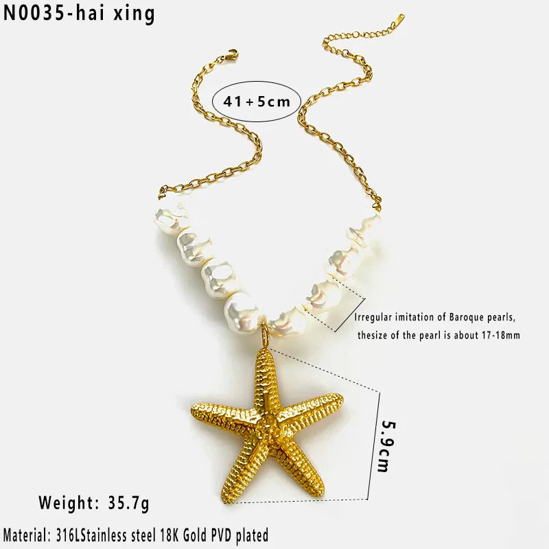 Κολιέ επιχρυσωμένο ατσάλι με μεγάλο αστερία- NE646