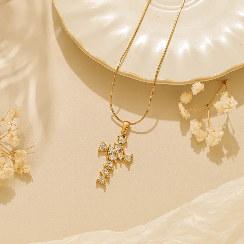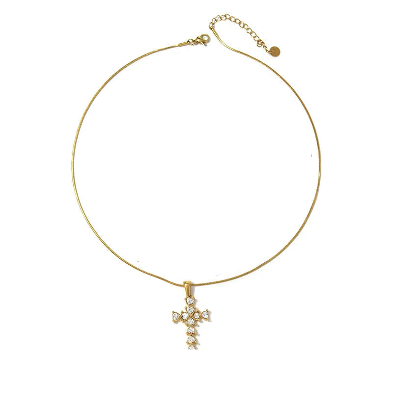 Κολιέ επιχρυσωμένο ατσάλι με σταυρό και zircon-NE438
