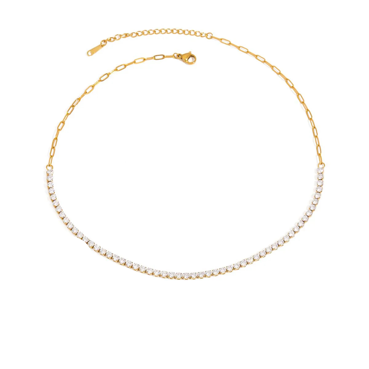 Κολιέ επιχρυσωμένο ατσάλι περιδέραιο με zircon - NE727