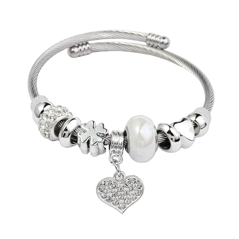 Βραχιόλι ατσάλινο bangle με charms και καρδιά -BR412