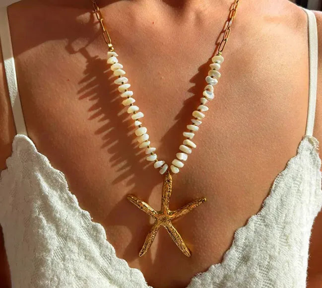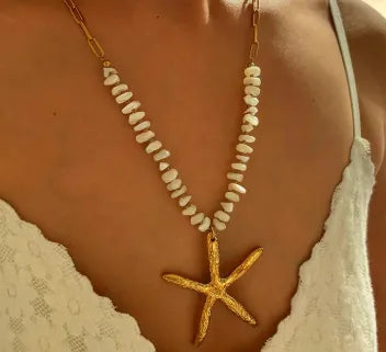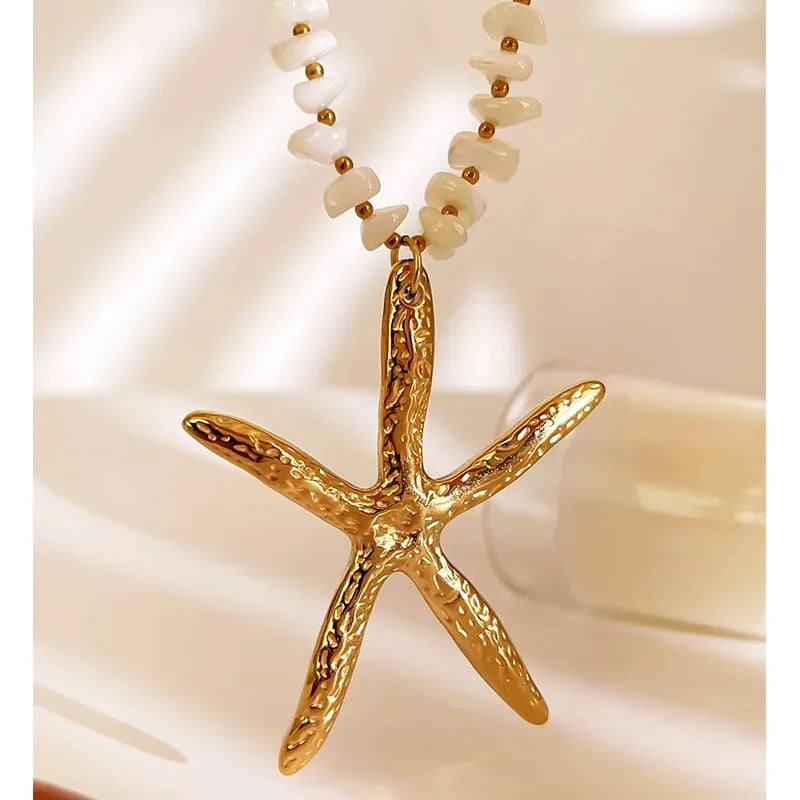 Κολιέ επιχρυσωμένο ατσάλι με μεγάλο αστερία - NE651
