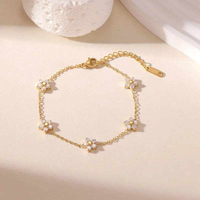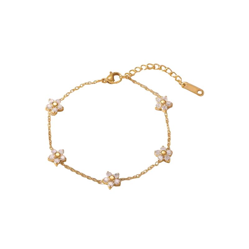 Βραχιόλι χρυσό ατσάλι με αστραφτερά λουλούδια-BR100