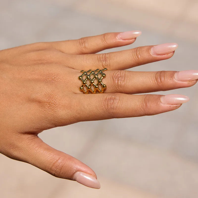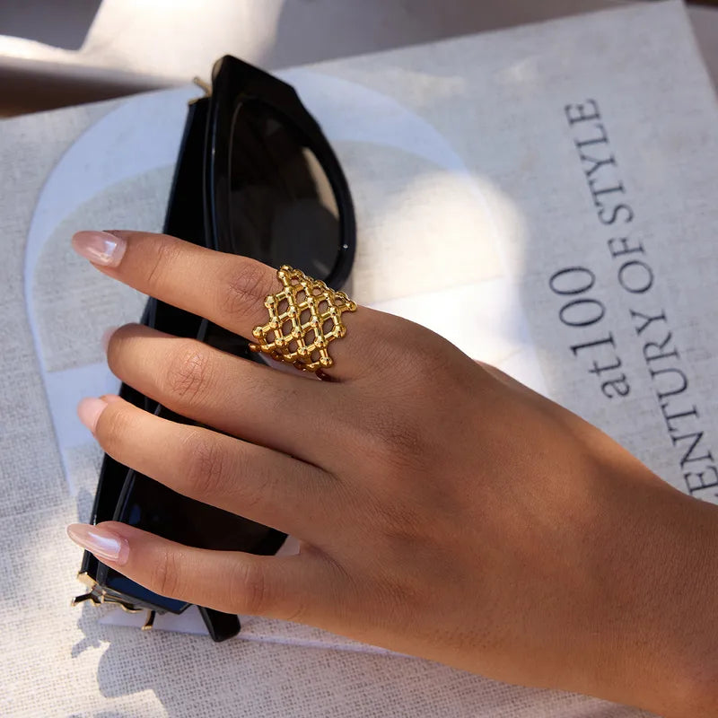 Δαχτυλίδι επιχρυσωμένο ατσάλι πλέγμα-R140
