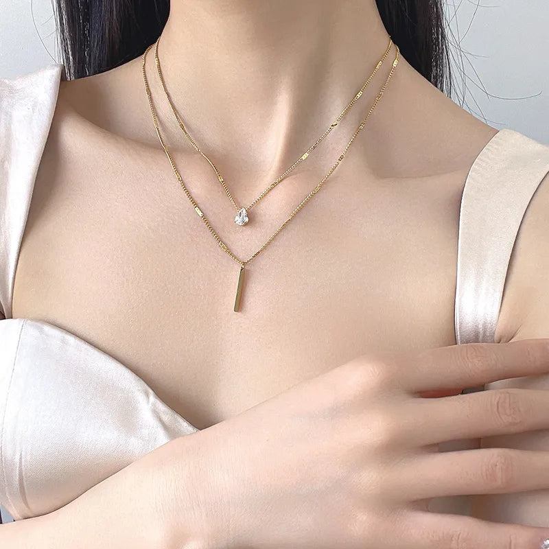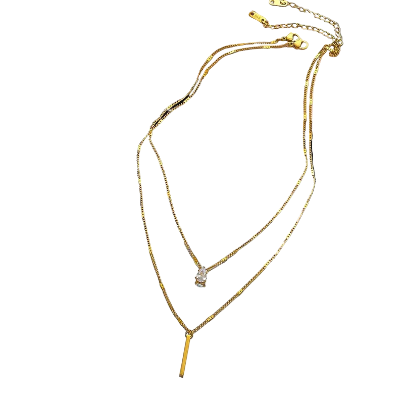 Κολιέ επιχρυσωμένο ατσάλι διπλό-NE090