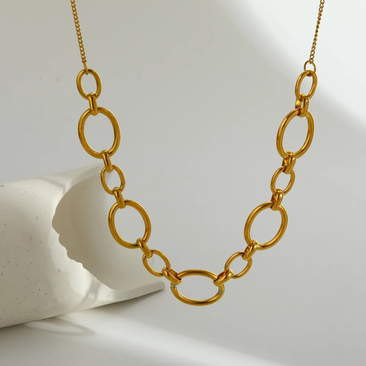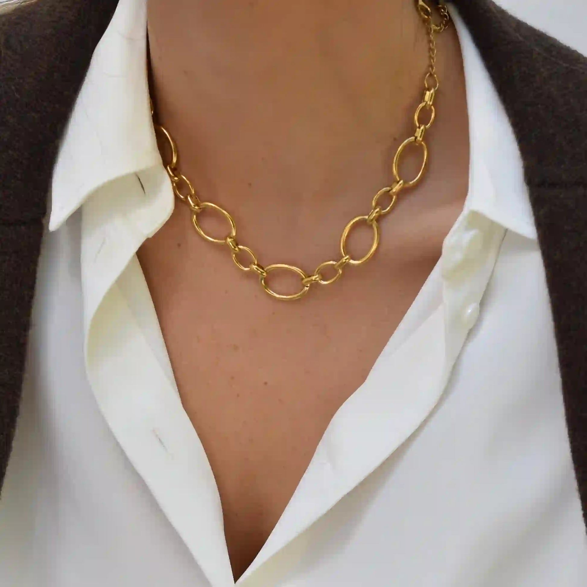 Κολιέ χρυσό ατσάλι με κρίκους-NE128