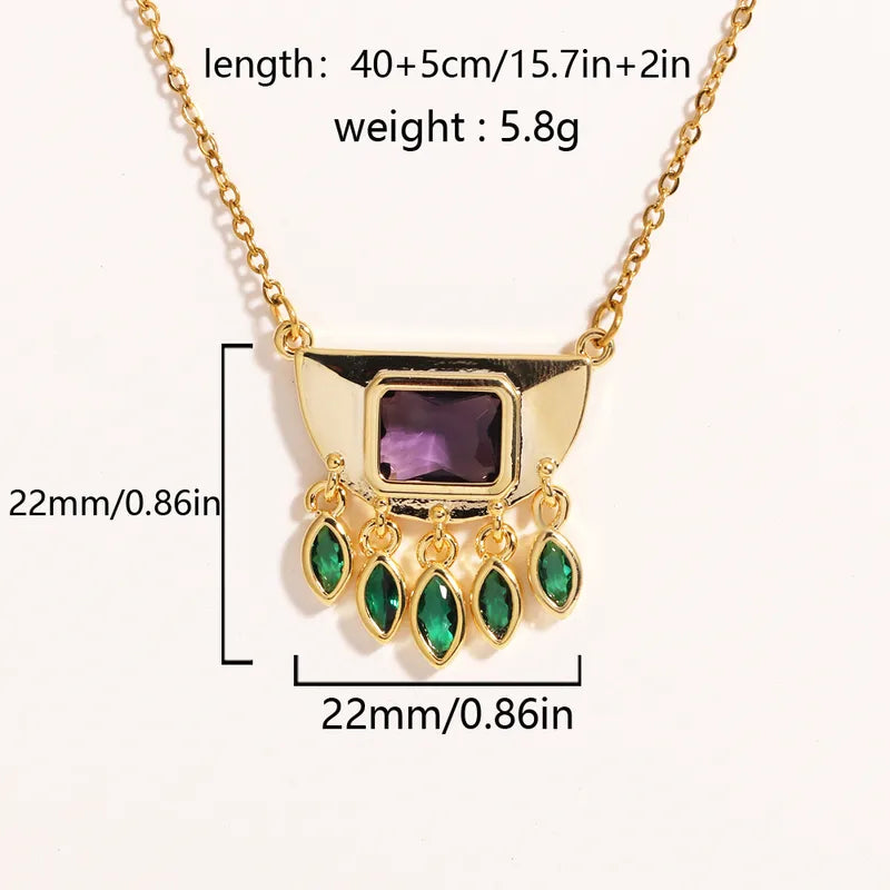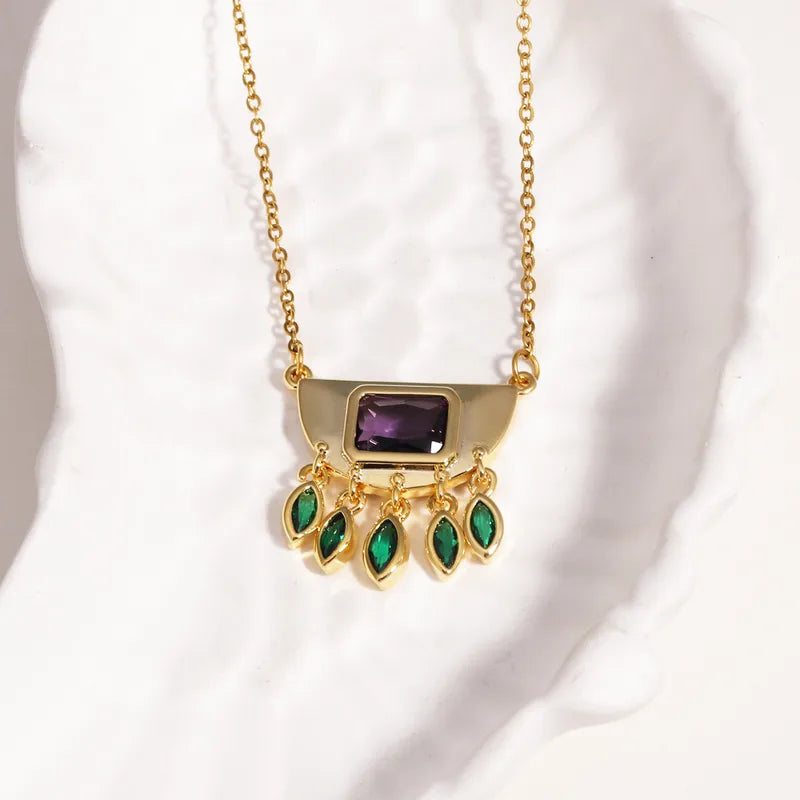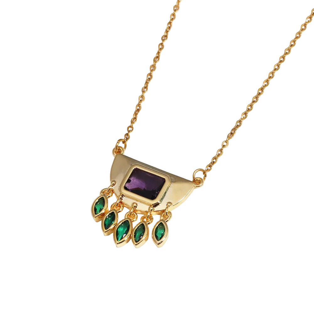 Κολιέ χρυσό ατσάλι με μωβ και πράσινες πέτρες-NE107