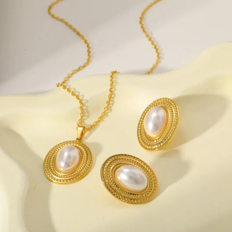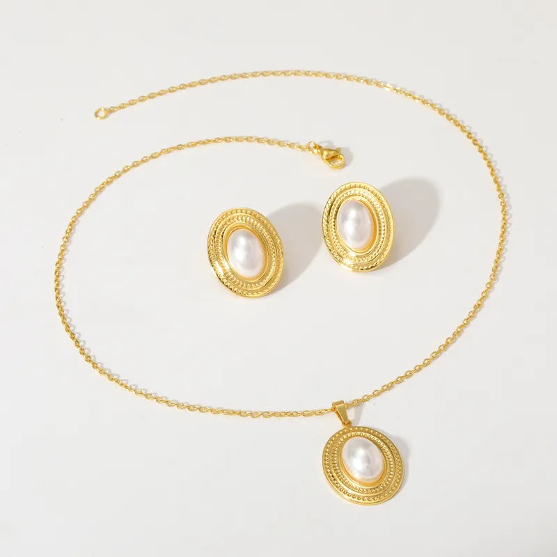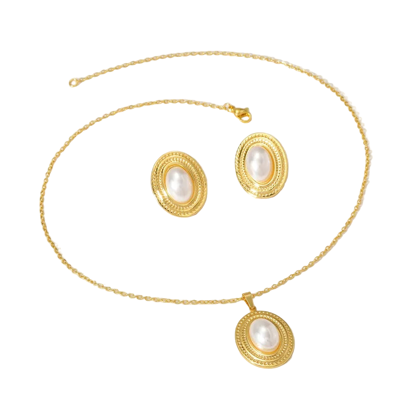 Σετ επιχρυσωμένο ατσάλι με πέρλες-SET038