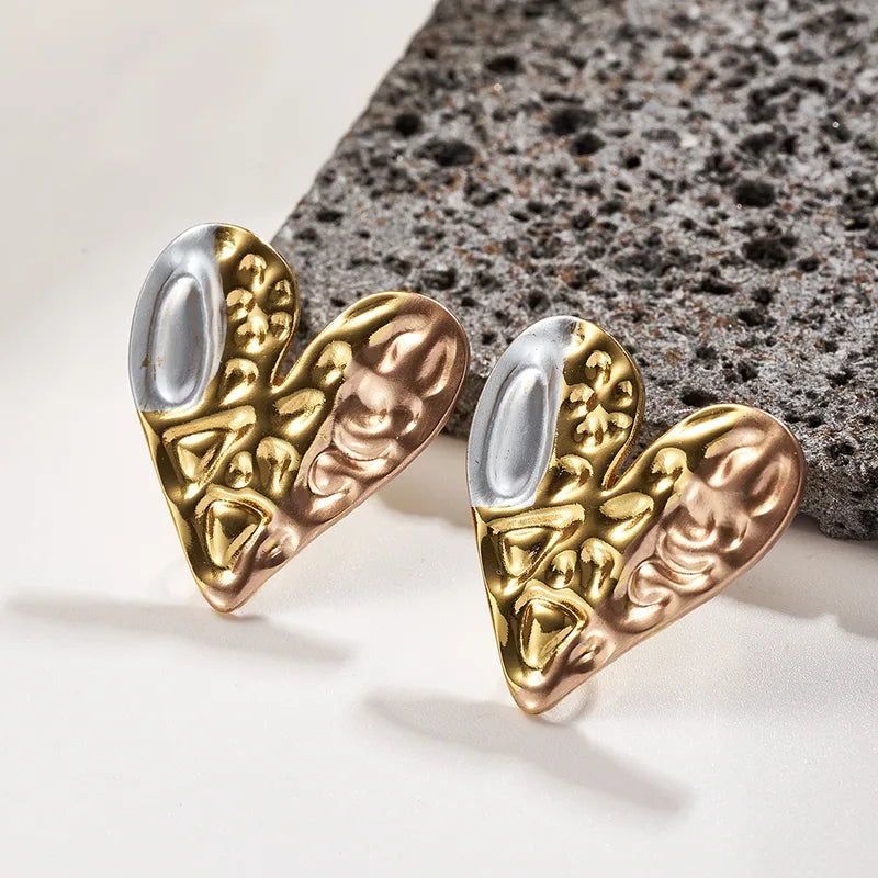 Σκουλαρίκια ατσάλι καρδιές με ασημί-EA097