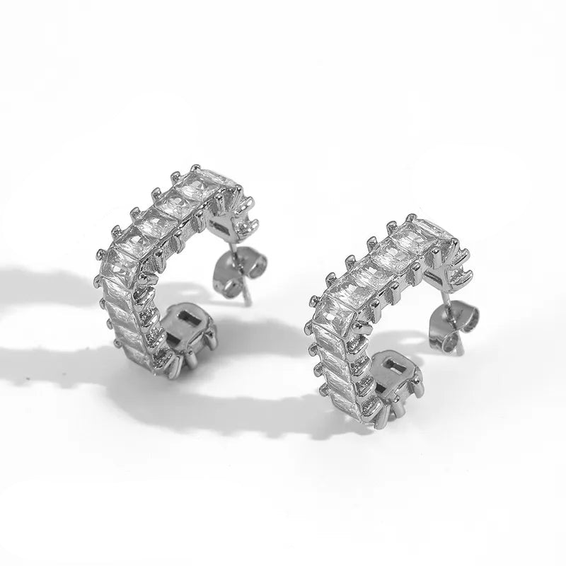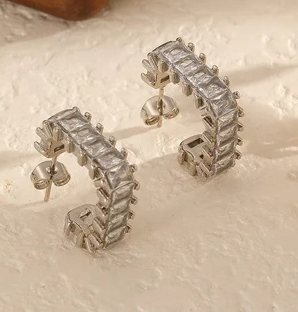 Σκουλαρίκια ατσάλι κρίκοι με zircon-EA478