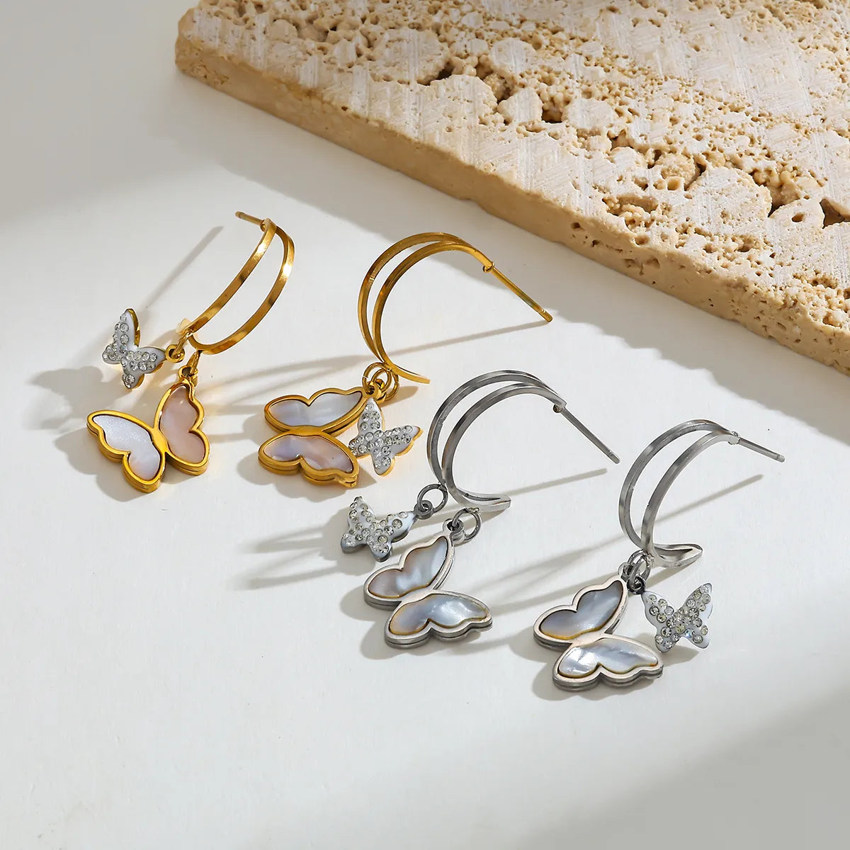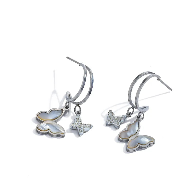 *Σκουλαρίκια ατσάλι πεταλούδες με zircon- EA225