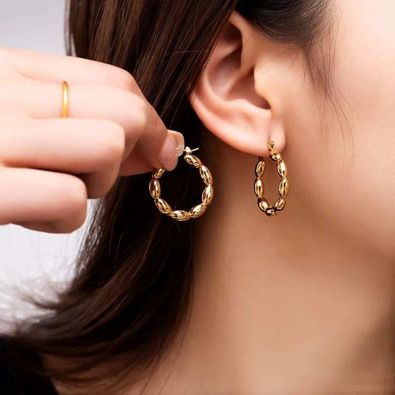 *Σκουλαρίκια ατσάλι χρυσά φουσκωτά-EA469