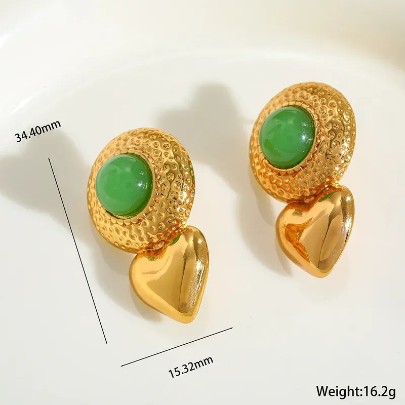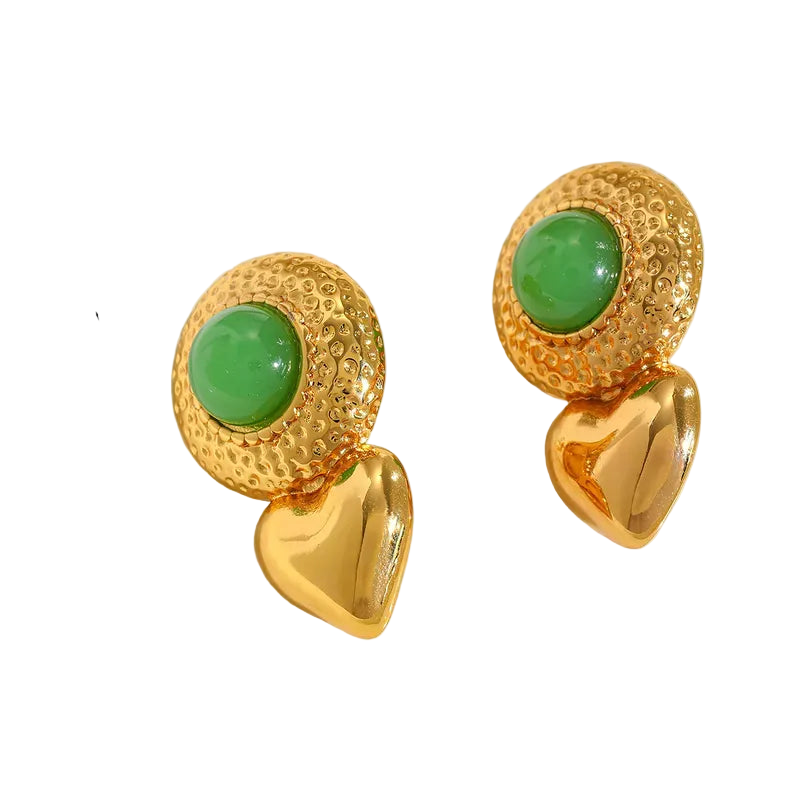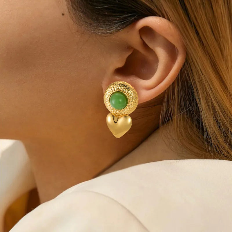 *Σκουλαρίκια επιχρυσωμένο ατσάλι με καρδία και πράσινη πέτρα-EA438