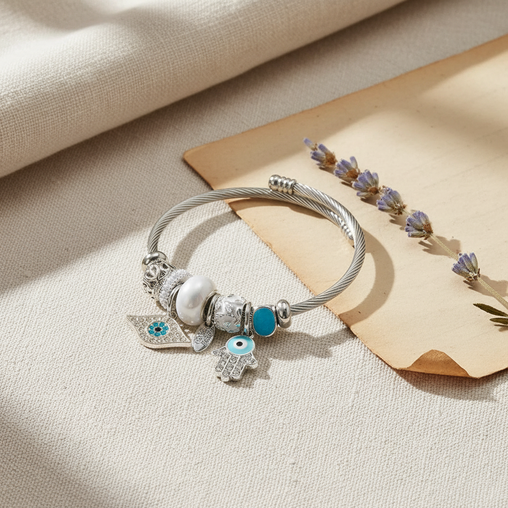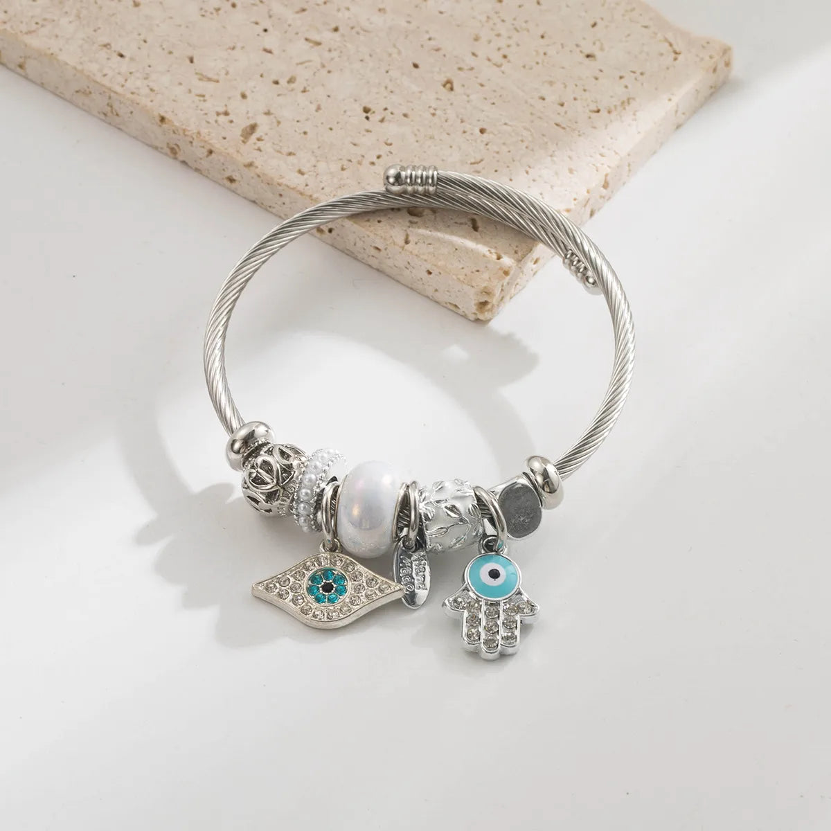Βραχιόλι ατσάλι με μάτια και στρας-BR028