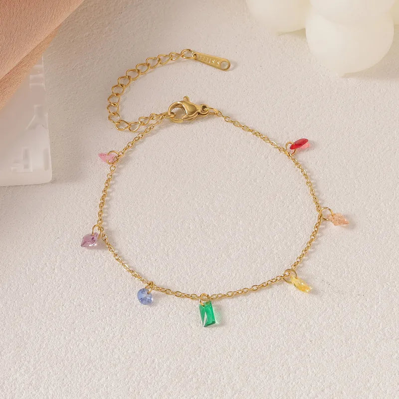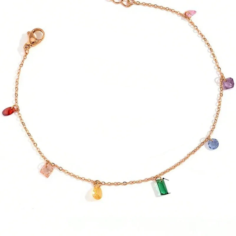 Βραχιόλι επιχρυσωμένο ατσάλι με πολύχρωμα κρύσταλλα-BR158