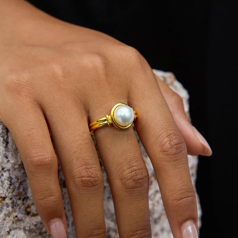 Δαχτυλίδι χρυσό ατσάλι με πέρλα-R177