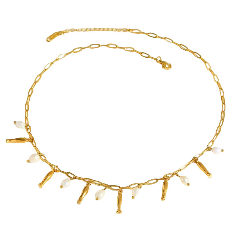 Κολιέ ατσάλινο με ψαράκια και μαργαριτάρια - NE174