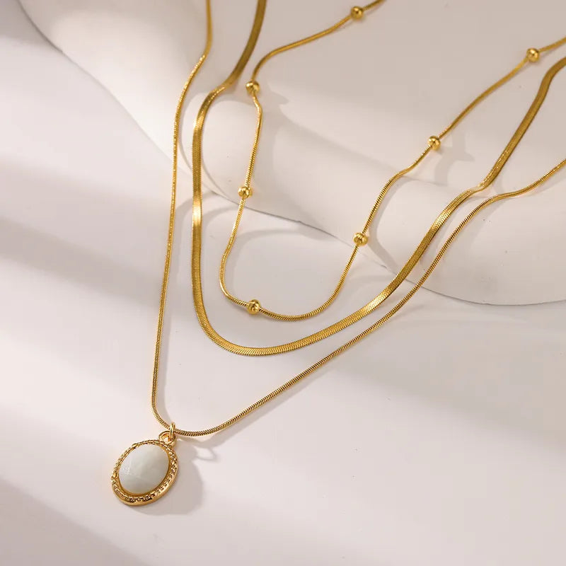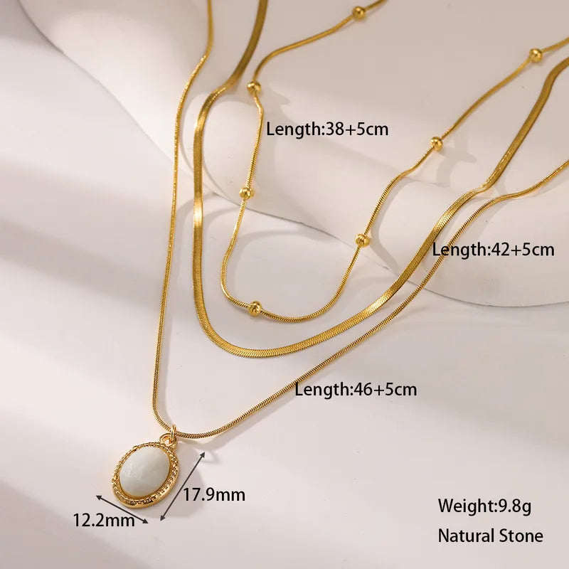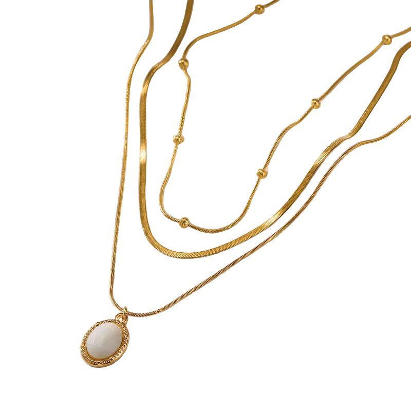 Κολιέ επιχρυσωμένο ατσάλι διπλό με λευκή πέτρα-NE118