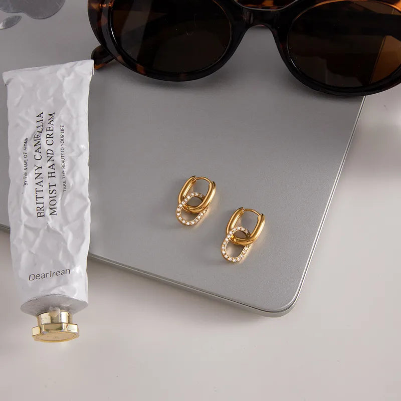 Σκουλαρίκια επιχρυσωμένο ατσάλι κρίκοι με zircon-EA495