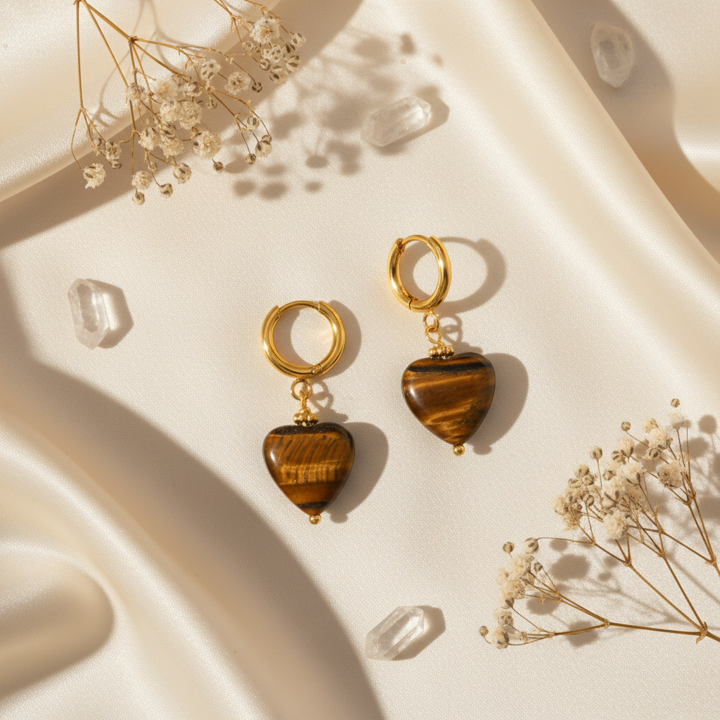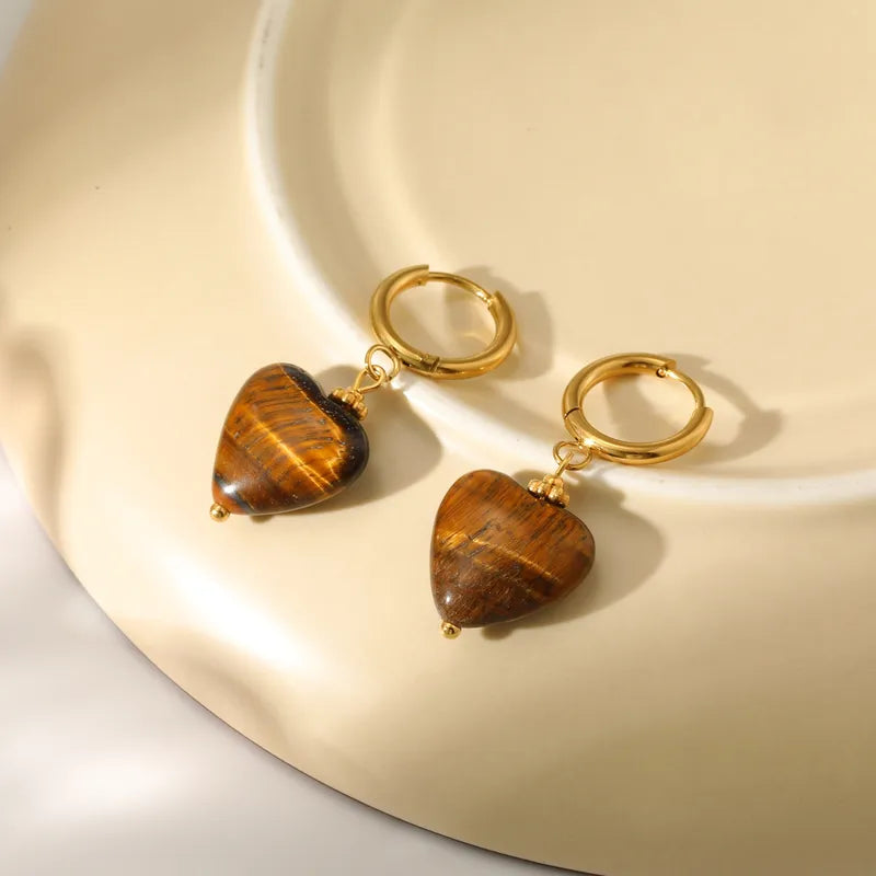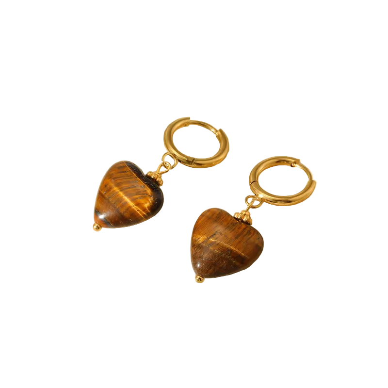 Σκουλαρίκια επιχρυσωμένο ατσάλι με καφέ πέτρα καρδιά-EA401