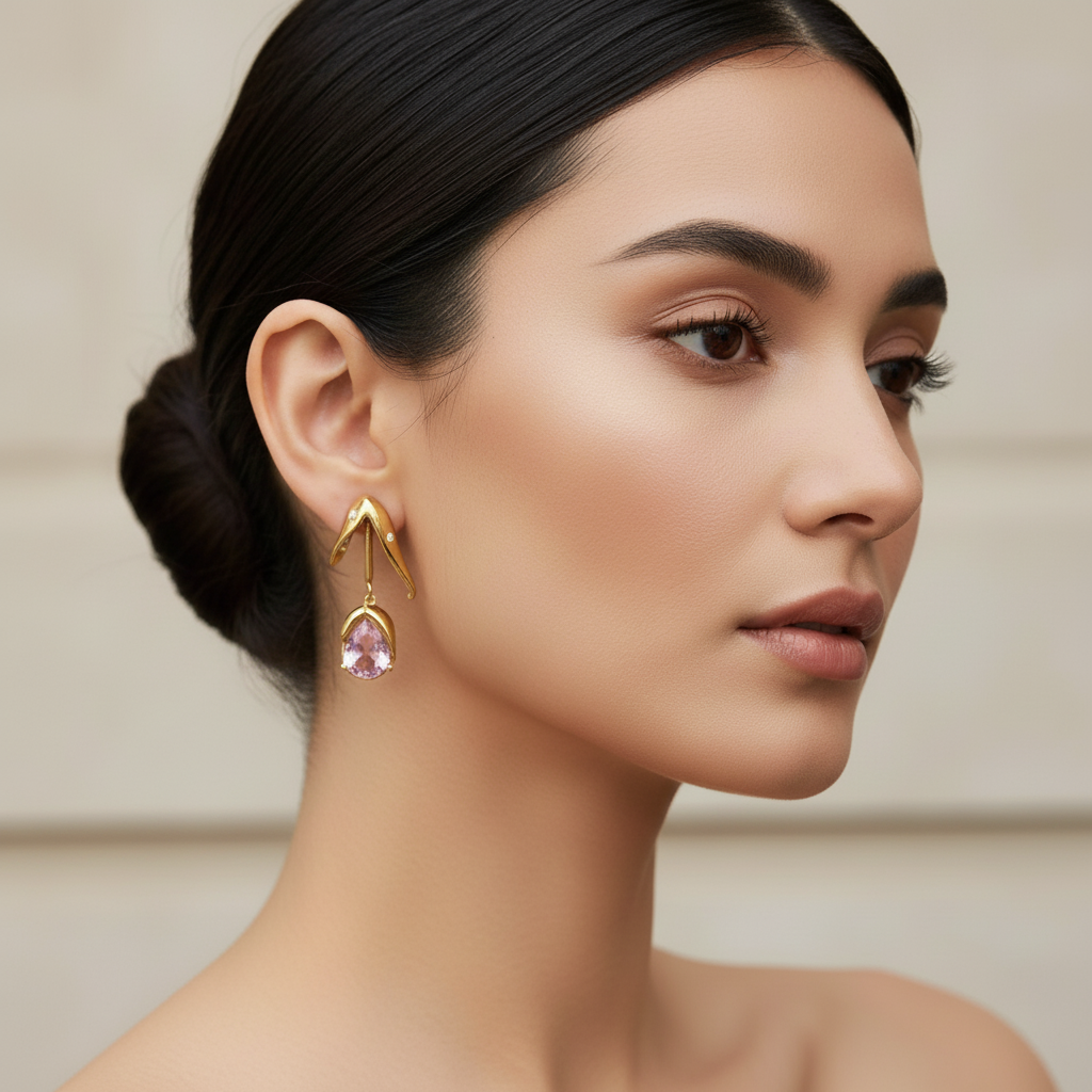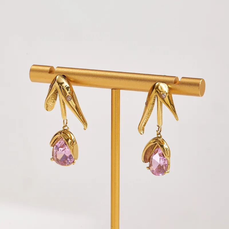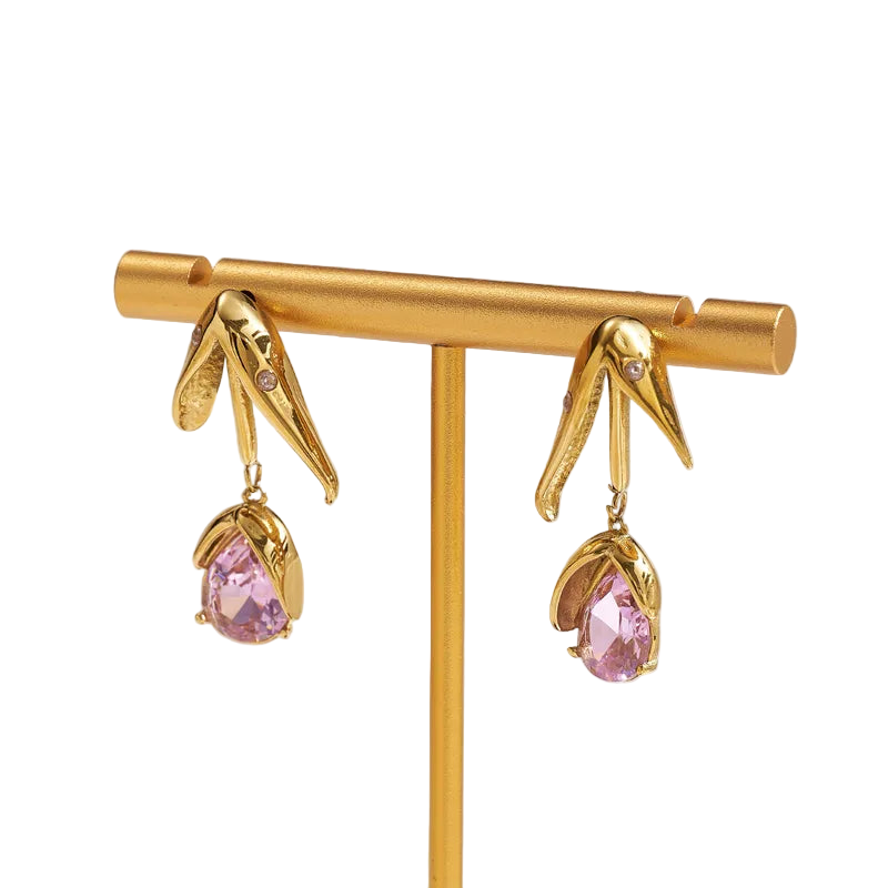 Σκουλαρίκια χρυσό ατσάλι με ροζ πετράδι-EA551