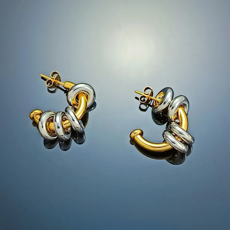 Σκουλαρίκια επιχρυσωμένο ατσάλι με ασημένια κρικάκια -EA679