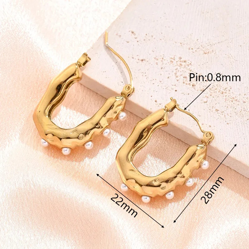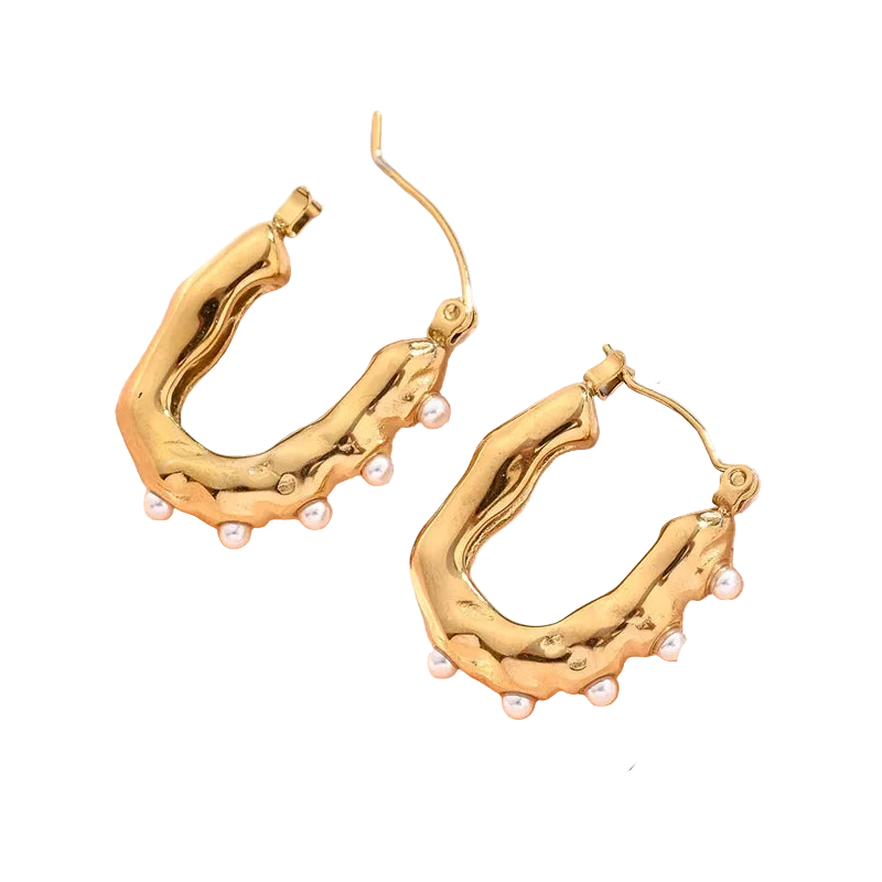 *Σκουλαρίκια χρυσό ατσάλι οβαλ με πέρλες-EA020