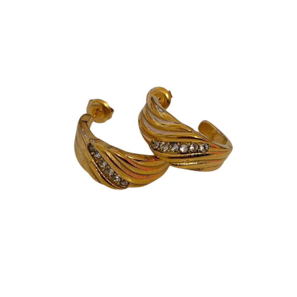 Σκουλαρίκια ατσάλινα xρυσά με στρας- w553